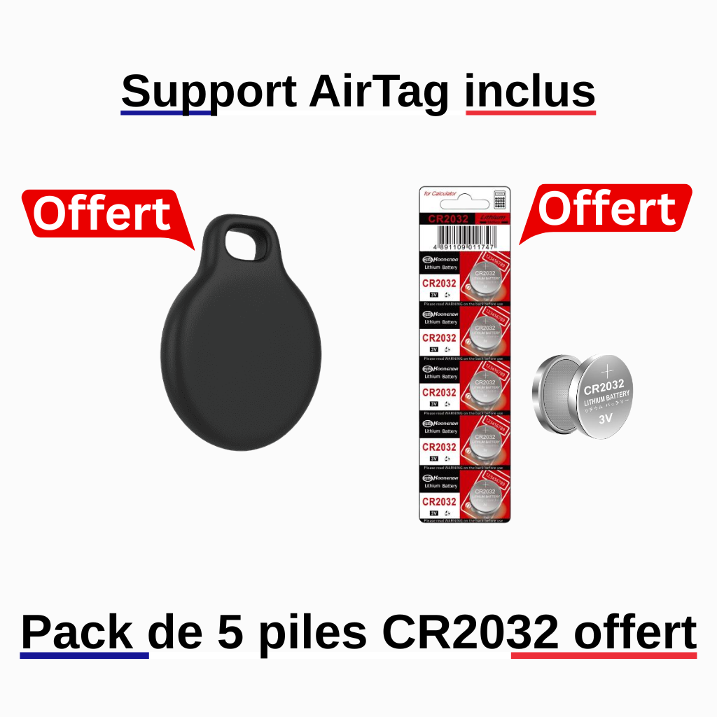 🎁 Bonus Inclus : support AirTag + pack de 5 piles CR2032 offert pour démarrer immédiatement à réception !